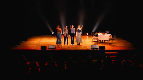 Un spectacle co-écrit par Marion Agoston, Félicia Baillifard, Fjolla Elezi et Era Malaj, interprété par Marion Agoston, Fjolla Elezi, Era Malaj et Gaëlle Imboden (qui reprend le rôle de Félicia Baillifard), en collaboration avec l’Université des Cultures de Genève.